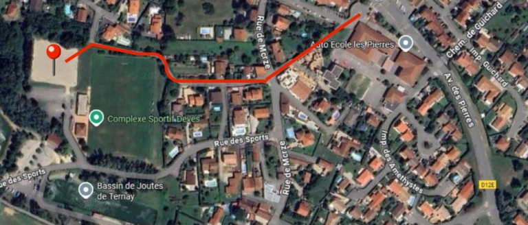 - Parking du Pédibus au stade du Devès pour les parents arrivant rue de Morze (cf. plan ci-dessous pour le trajet jusqu’à l’école, en empruntant le portillon créé à cet effet et débouchant sur le chemin des Moines).