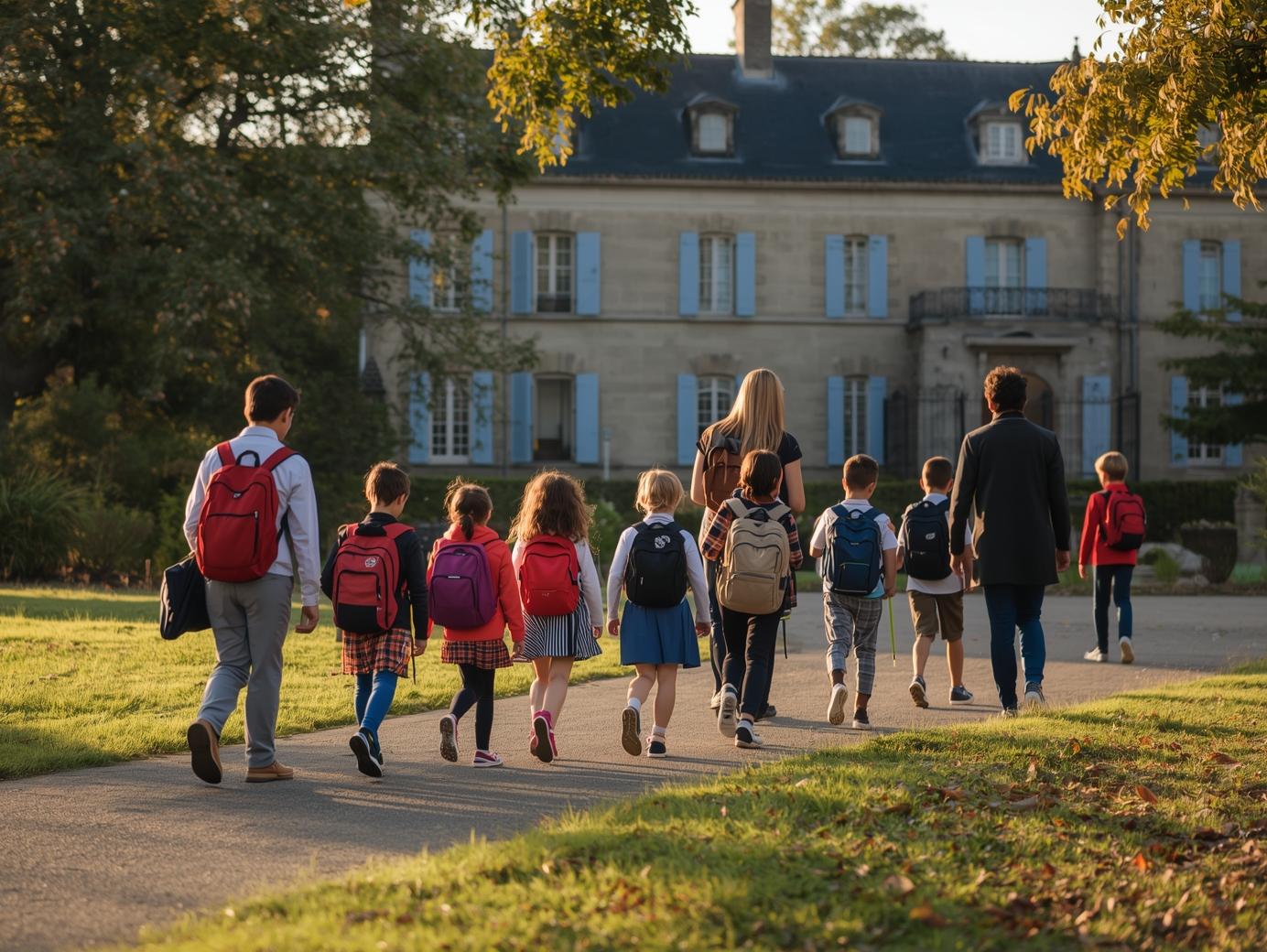 Des agents communaux accueillent et accompagnent les enfants jusqu’au groupe scolaire.